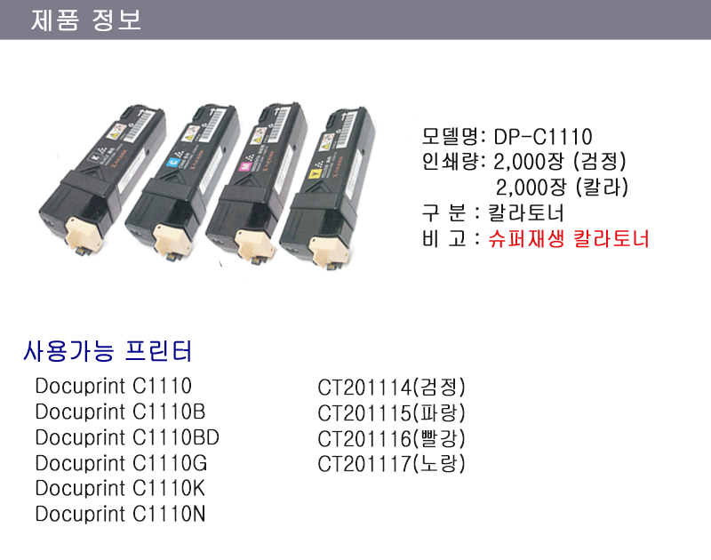 후지제록스 DocuPrint C1110N 토너 C1110BD C1110G C1110K