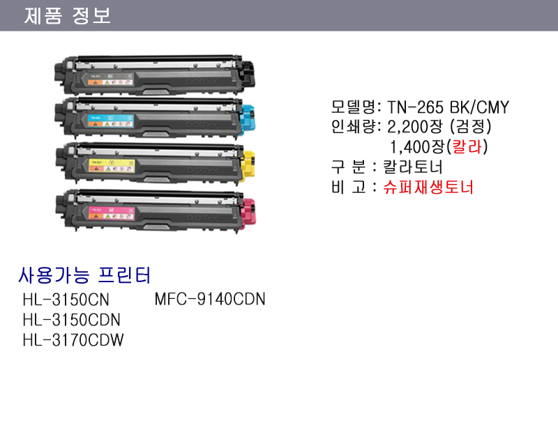 브라더 HL-L3210CW 토너 TN267 TN263 DCP-L3551CDW MFC-L3750C..