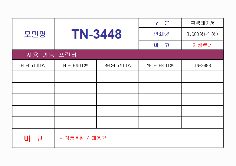 브라더 HL-L5100DN 토너 TN-3448 MFC-L5700DN HL-L6400DW MFC-L6900DW